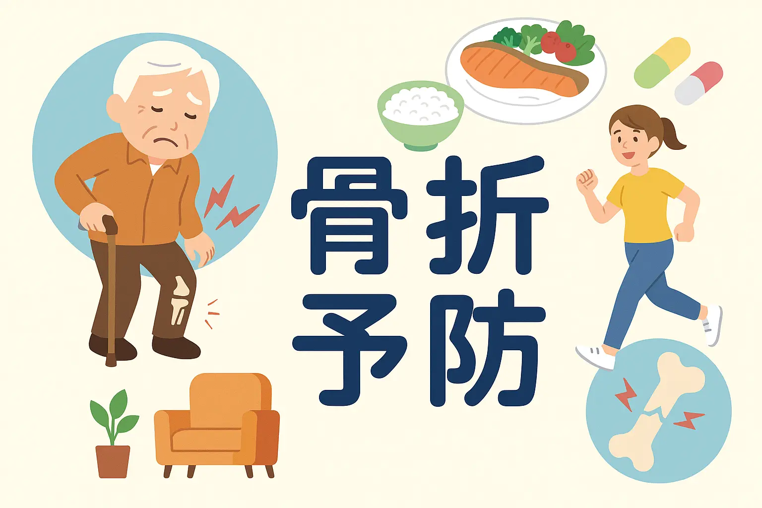 はい。最も効果的なのは、転倒しにくい体づくりと骨を強くする生活習慣です。